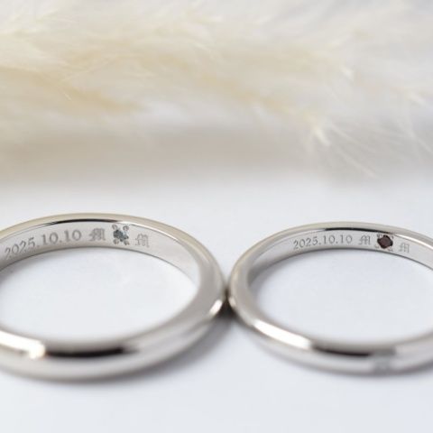 結婚指輪なので、シンプルでずっと使える指輪にしました!また、作るときにはお互いの指輪を作り合って、さらに中にお互いの指紋でハートマークが刻印されており、二つの指輪を重ねると浮かび上がるようにしてもらいました!