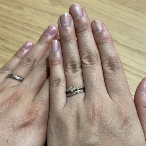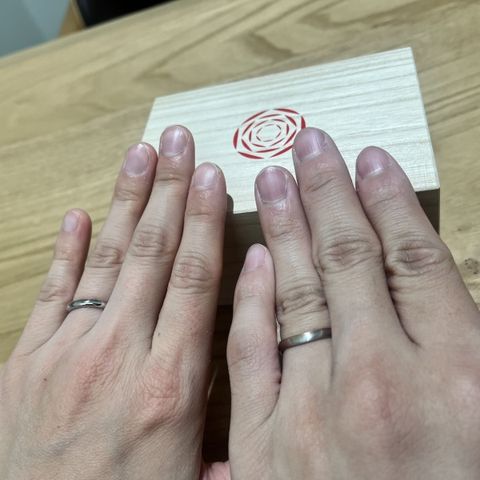 シンプルかつ個性も感じるデザインだと感じました。主張しすぎず、日々の生活の中にも溶け込むことができると思います。指が細いので、リングの太さやデザインといったところで、二人に合ったものを見つけることができたと感じています。