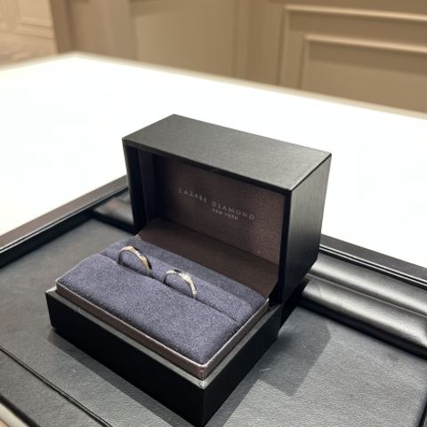 ラザールダイヤモンドはふらっと入っただけでしたが、人目見た瞬間、男性にも似合うようなデザイン・太さの指輪が沢山あり、2人のテンションが上がりました。私たちは、2人が納得のいくかつお揃いの指輪が良かったため、男性にも似合うしっかりとした指輪のデザインが沢山あるのは有難かったです。ダイヤモンドにも特にこだわりがありませんでしたが、ラザールのことを調べるうちに、ラザールのダイヤモンドカット技術やダイヤモンドの質に驚き感心しました。また、太陽光やイルミネーションなどによっても輝き方が変わるそうなので、色々な所に出掛けたいと思いました!