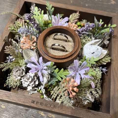 手元に届いたミル打ちのリングは、想像以上に素敵なものでした。 ふたり揃って「うわー綺麗」と口にしました。 この素敵なリングをふたりで一生つけていくのだと思うと、幸せな気持ちでいっぱいになりました。 入れ物も一枚板から作成されているとのことで、素敵でした。