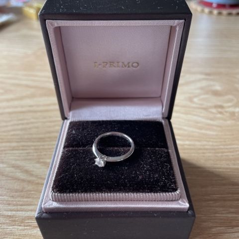 ダイヤモンドとリングのデザインがお気に入り。ダイヤのカットと上に乗っかってるだけで存在感が増して素敵。リングの方も、デザインをじっくり選んだうえで、ダイヤが綺麗に見えるようなデザインにしたところがお気に入りポイント。