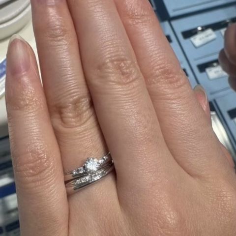 いくつか探した中で、1番指が綺麗に見えて、ふたりのペア感をしっかり感じられる指輪でした。ダイヤの入り方も控えめなのに存在感があり、デザインはシンプルだけど他にはない個性があって、とても気に入っています。