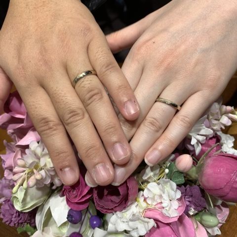 婚約指輪を先にもらったので、その婚約指輪のウェーブデザインと同じラインに来るように結婚指輪を作成しました!また、婚約指輪がプラチナなので結婚指輪も存在感が出るようにゴールドで作成しました!この二つが指輪のおすすめポイントです!