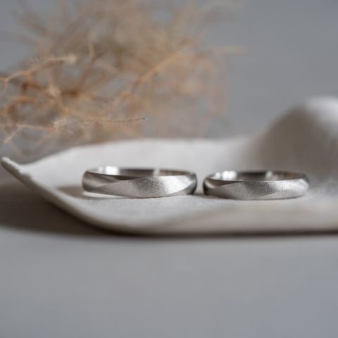 さりげないけれど、捻りのデザインがオシャレで素敵です。 私はひねりの部分をツルッとした仕様・全体をざらついた仕様に、彼はその逆のデザインにしました。 シンプルだけど捻りによって存在感が出るので、歳を重ねても映えるデザインだと思います。