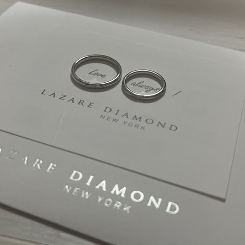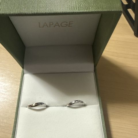 ダイヤモンドが入っているものを希望していました。ダイヤモンドが綺麗に収まっていて普段使いしても取れたりする心配がないことがポイントでした。また、ダイヤモンドが複数入っていても主張しすぎないことも気に入りました。 婚約指輪もラザールさんで購入しましたが、重ね付けしても綺麗に収まるように少しカーブのあるデザインを選びました。