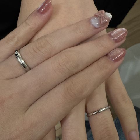 骨格ウェーブなので少しカーブがあったり、ウェーブのデザインの方が手が綺麗に見えると思いこれにしました!また、いつもはゴールドアクセサリーが多いですが、シルバーにピンクゴールドを入れてもらうことで結婚指輪感もありつつ自分の肌の色に合うデザインだと思いました。