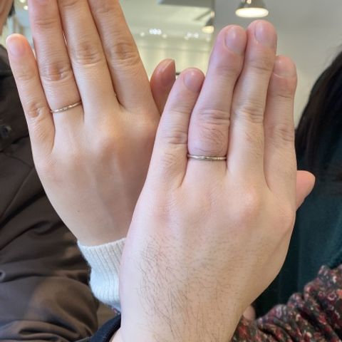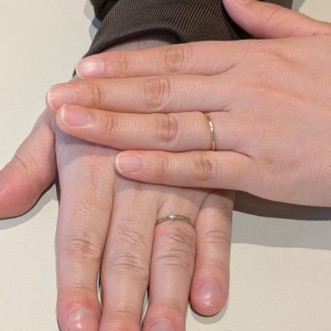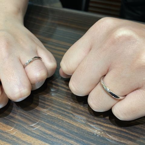 シンプルで長く着用することを考えて選びました。細すぎず、太すぎないのがちょうど良かったです。 普段指輪をつけない夫婦でしたが、着け心地もよいところがおすすめです。 また今回、私(妻)の方にダイヤを1粒つけました。デザイン的に今後ダイヤを増やすことも可能とのことで、今後10年ごとに1粒ずつダイヤを増やしていくのもい いね!と夫婦で計画できたことも楽しみが増えて嬉しかったです。