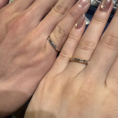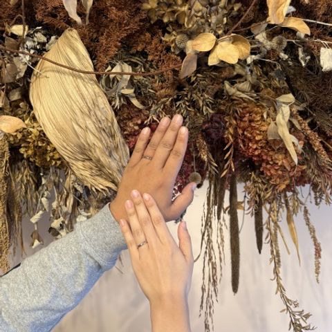 定番のデザインもありつつ、他のブランドとは少し違った繊細なデザインが魅力的でした。細身の形や縁だけピンクゴールドになっているものなど、上品で個性のある 指輪が多く、私たちの好みにぴったりでした。キャンペーンで誕生石を内側に入れられる点も特別感があり、手作りにするか悩んでいた私たちにとって「オリジナル性 と品質の両立」が叶う理想の指輪でした。