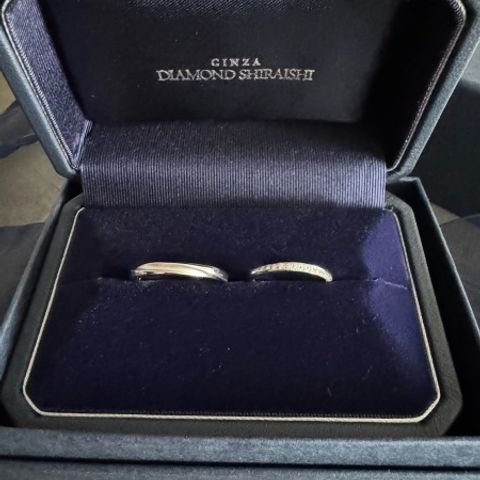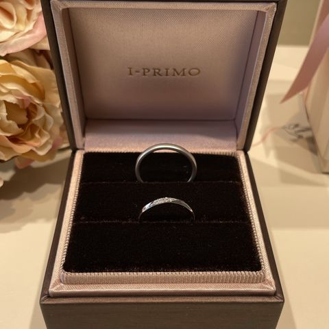 イエベの私でも似合うように、真ん中にピンクゴールドを、旦那様(ブルベ)は、スタイリッシュにマット加工を入れてもらいました。ダイヤモンドも、1つのダイヤから削り出した2つのダイヤを、私は表の1番大きいダイヤに、旦那様は内側に入れてもらい、2人のイニシャルも、デザイナーさんが、私たちの話や雰囲気から考えてくださったものを入れました。 ふたりのこだわりを、綺麗にまとめてくださった、夫婦共々お気に入りのリングです。