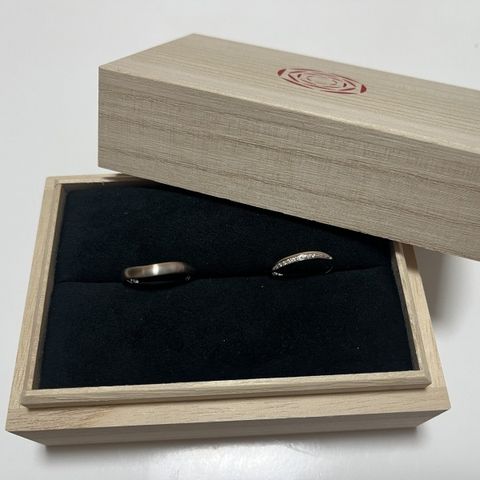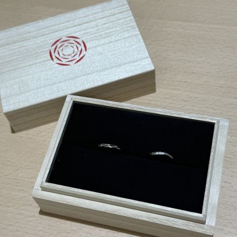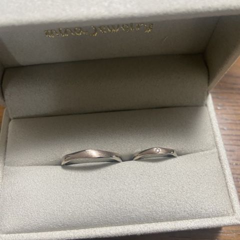 夫が外仕事で手を使うことが多いため、第一条件として強度がある指輪を探していましたが、この指輪はプラチナ900で、かつ、鍛造製法であったため選びました。また、デザインもシンプルかつツートーンになっており可愛さもあるため、これから毎日つける指輪としてとても素敵な指輪です。