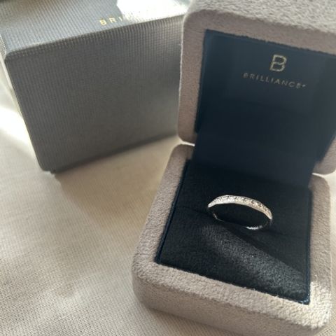 デザインはシンプルながら品があり、どんな服装にも合います。また人とかぶらないマットな質感がヴィンテージ感もあり、モードにもふれます。ハーフエタニティのダイヤも煌めきが綺麗で、高級感があります。マットな指輪の質感ともあいます。