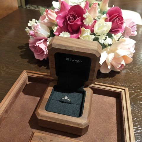 指輪のデザインは少しひねりのある形がとても可愛らしく、全体にダイヤがさりげなく散りばめられていて上品な輝きがありました。プラチナ素材で高級感もあり、実際に着けたときのフィット感や滑らかな付け心地もとても良かったです。