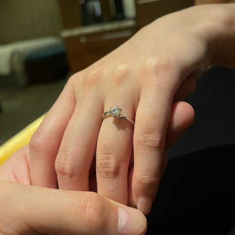 普段使い出来る様に、シンプルなデザインを探していた所、心に刺さる様なデザインを見つけました。王道なデザインながらダイヤモンドを主張してくれるそんな指輪です。華奢な女性の指にはとても映えると思います。私がまさかこんな指輪を渡せるとは思いもしなかったです。